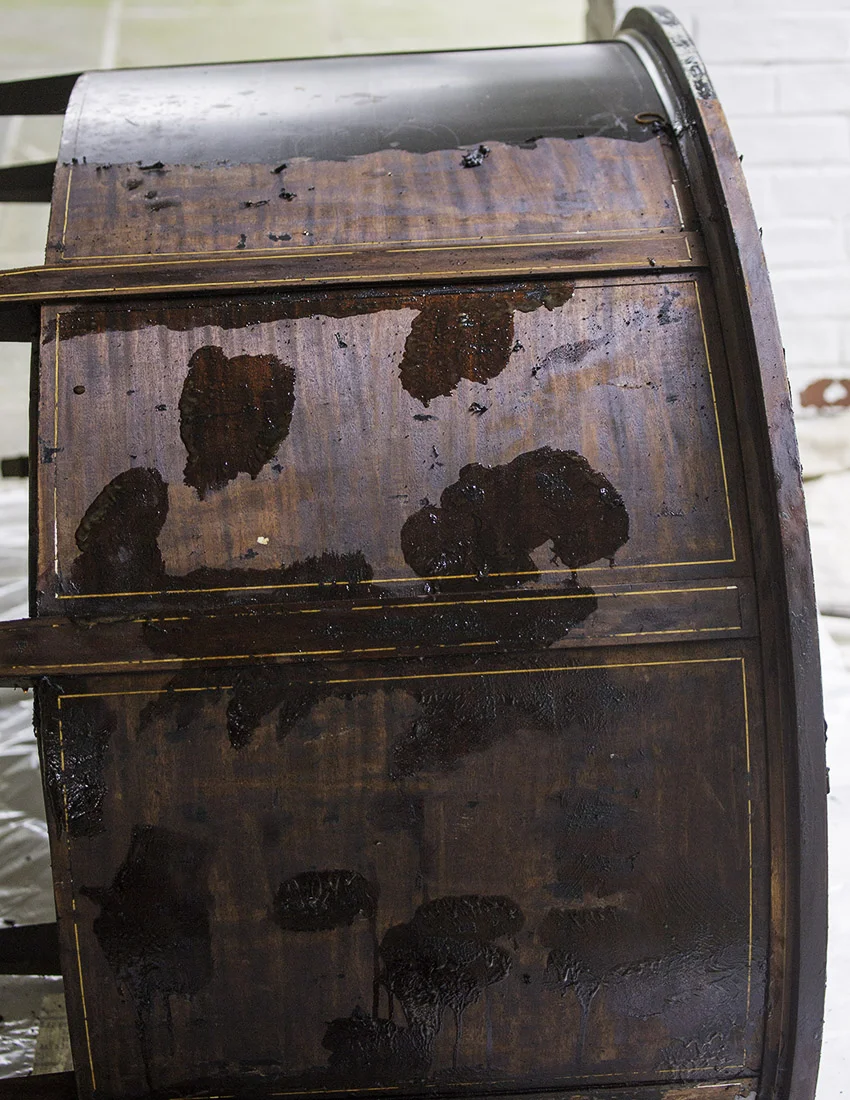The desk had countless layers of black paint and varnish which took hours to remove using chemical strippers and sanding.